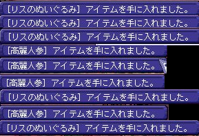 今日までのレア:リスのぬいぐるみ×5、高麗人参×4